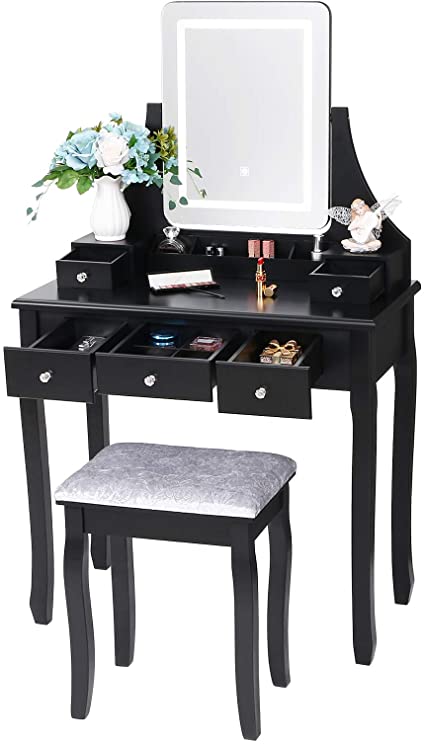 ANWBROAD Tavolo Cosmetici Vanity toeletta LED Toletta tavoli… Agosto 27, 2021 ANWBROAD Tavolo Cosmetici Vanity toeletta LED Toletta tavolino da Trucco con Sgabello Tavolo per Cosmetici specchiera 5 Cassetti 2 Divisori Organizzatori Camera da Letto… Read More